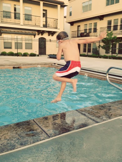 Yesterday was a birthday for the history books. Erikboy had swimming lessons. And then we went swimming at the Provo Rec Center. (He jumped off the cliff into fourteen foot water... twice!) And then just when we thought our day was going to slowly fade into sunset, we had cousins call and ask if we wanted to swim once more. (The answer was yes.) We swam up until dark - and Erik was one happy little man. Best birthday ever.